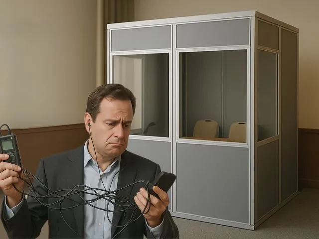 - La configuración del equipo es compleja: se necesitan cabinas, auriculares y asistencia técnica.
